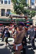 The Latest: Hillary Clinton Marching in NYC gay pride parade A vendor holds rainbow flags as he walks near Fifth Avenue before the New York City Pride Parade on Sunday, June 26, 2016, in New York City.