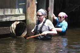 Sting operation: Jellyfish targeted before they can multiply In this May 19, 2016 photo, employees of the New Jersey Department of Environmental Protection, work to scrub jellyfish polyps from a bulkhead in a ...