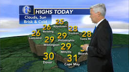 AccuWeather: Brisk, Very Cold Again Today TODAY: Clouds mix with some sun. A passing snow shower or flurry is possible at times in Delaware and South Jersey. ... MONDAY (NEW YEAR'S DAY): The temperature at dawn will be 13 in Philadelphia, bitterly cold for Mummers and their fans gathering for the parade. The afternoon high is only 24.